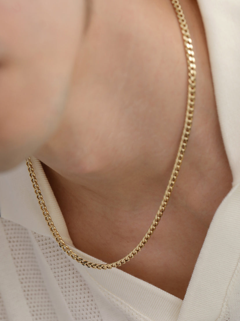 The pureness of gold is measured in karats (different from ‘carats’ with a ‘c’) in parts of 24. Gold is naturally very soft and fragile, so alloys are added to increase its durability and hardness. 9-Karat solid gold contains 9 parts of gold and 15 parts of alloys. Extremely durable and accessible, our 9-karat gold pieces are perfect for those looking for affordable jewelry to wear every day without worrying about scuffing and scratching.