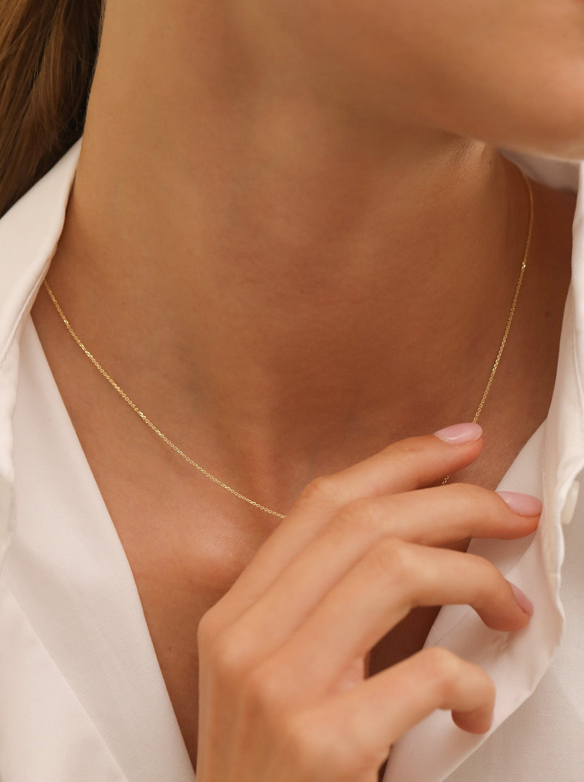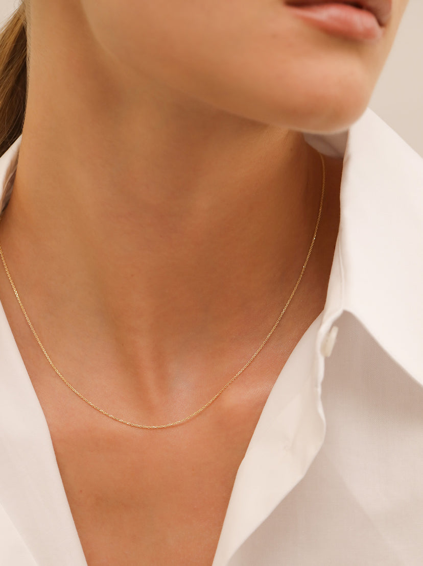 Meet the necklace you'll keep coming back to (or just never take off). This dainty yet durable solid gold chain shines on its own but is also the perfect piece for showing off your favourite pendants. Wear it at any length your heart desires with our signature adjustable clasp.