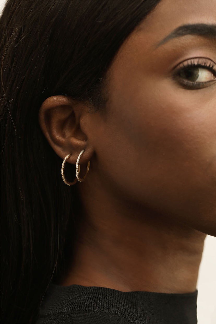 Who said diamonds are for special occasions only? These solid gold diamond-paved hoops are a timeless addition to your everyday staples. Perfect for the office, but at the same time bold enough for a night out. Lined with rows of brilliant-cut diamonds, these are not your average hoops.