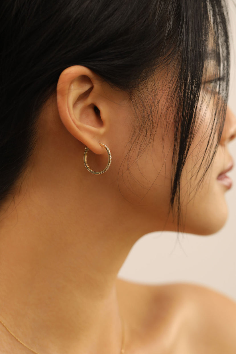 The pureness of gold is measured in karats (different from ‘carats’ with a ‘c’) in parts of 24. Gold is naturally very soft and fragile, so alloys are added to increase its durability and hardness. 9-Karat solid gold contains 9 parts of gold and 15 parts of alloys. Extremely durable and accessible, our 9-karat gold pieces are perfect for those looking for affordable jewelry to wear every day without worrying about scuffing and scratching.