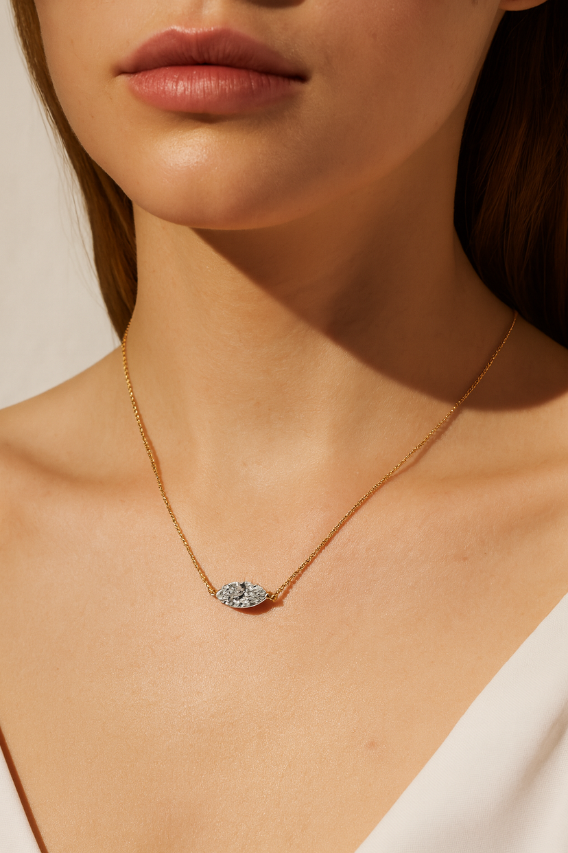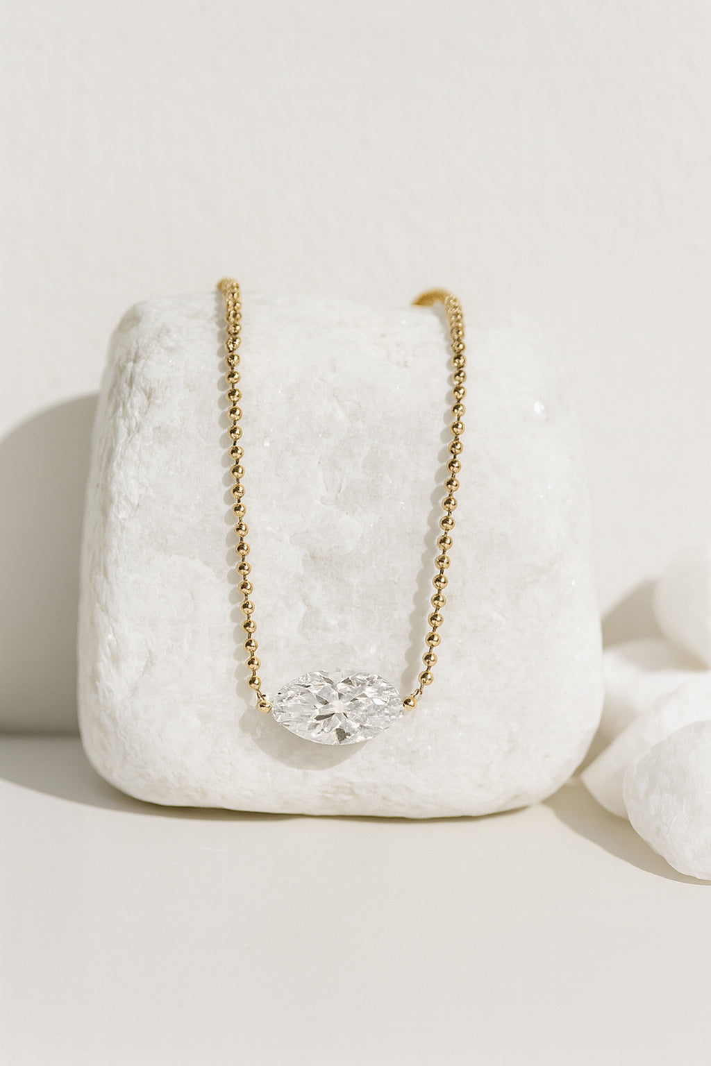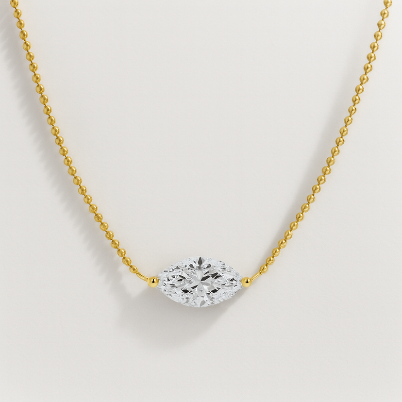 Marquise cut lab diamond necklace / 9K and 18K Solid Gold