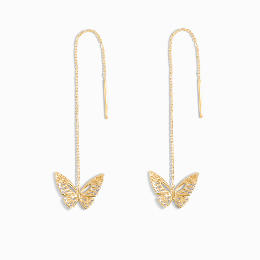 The Monarch Butterfly Drop Earrings are claiming a permanent spot in your jewelry box, and here's how: with white sapphires embellished butterflies fluttering at the end of the drop, this gold vermeil pair is playful, elegant and everything in between. Wear yours for any occasion, because these beauties have serious range.