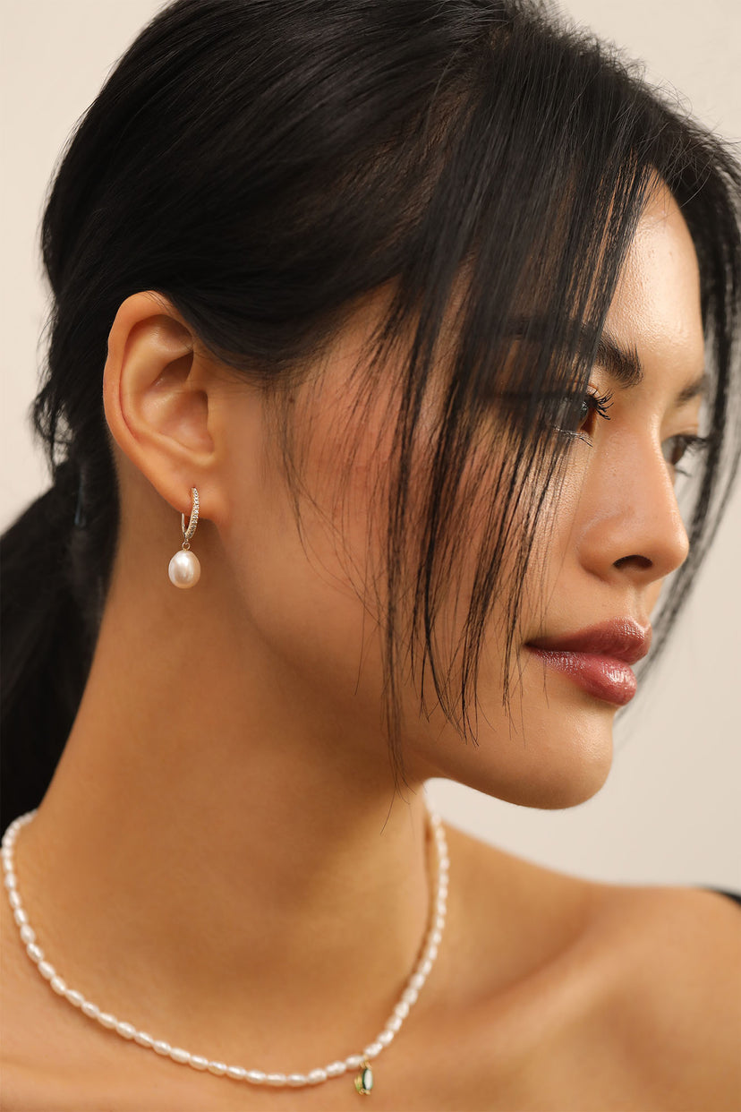 Introducing the cultivated essentials for every day– these earrings are an out-of-the-ordinary rarity. The pair’s alluring luster is maximized by its natural freshwater pearl that dangles freely on the diamond-studded 9K or 18K solid gold huggie. Mark every statement as divine and striking by creating your most unique, classiest ensemble.