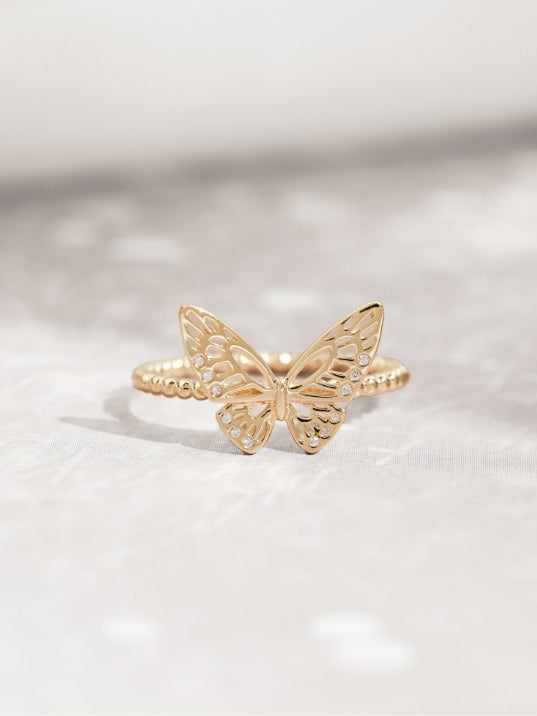 The Butterly Ring dances on your finger, leaving behind sprinkles of shimmer with diamonds.