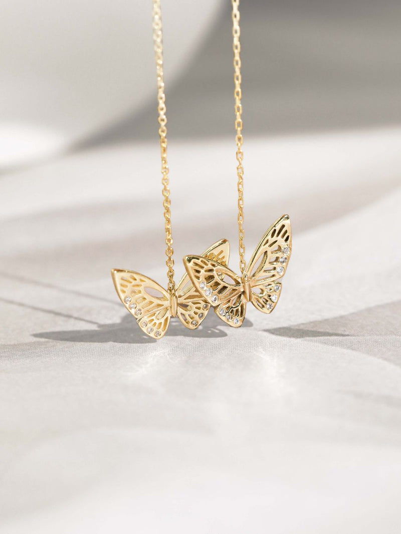 White Sapphires on luxurious gold — a necklace that gives you all the flutters.