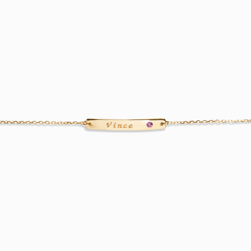 The bond between mother and child is pure magic. This pair of matching, engravable bracelets is a symbol and celebration of this special, everlasting connection. Made of solid gold and set with a rhodolite garnet — the gemstone of love, kindness and compassion — these thoughtful pieces are sure to become treasured family heirlooms. Both bracelets feature a shiny, gold bar that is ready to be engraved to make it an even more memorable gift. The bracelets have an adjustable chain to ensure a perfect fit, now and for years to come.
