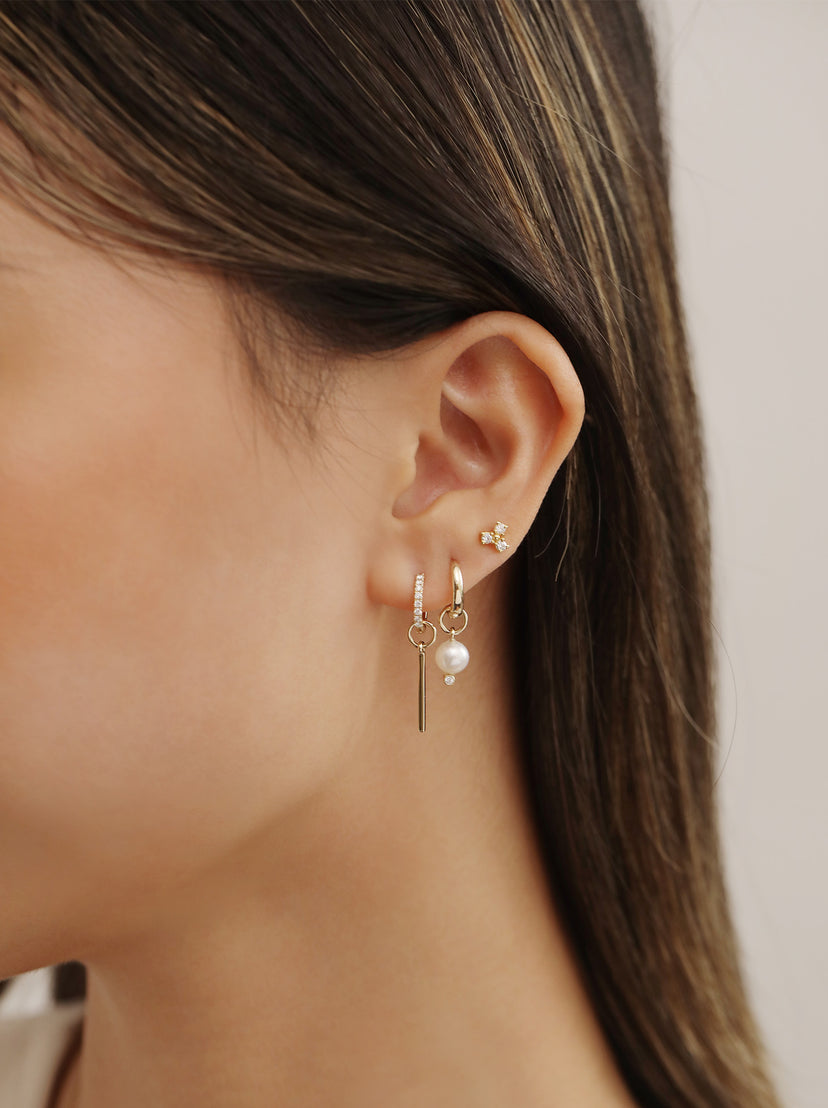 Power of the stack. Expertly handcrafted, the Bar Hoop Charm features a glistening 9K/18K solid gold bar – high-impact upgrade for your everyday hoops. Select, swap, and stack it however you desire. Create contrast by mismatching your charms – be uniquely you!