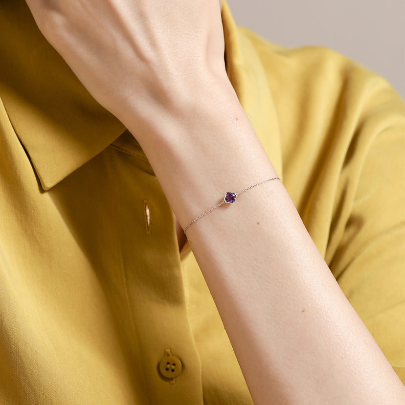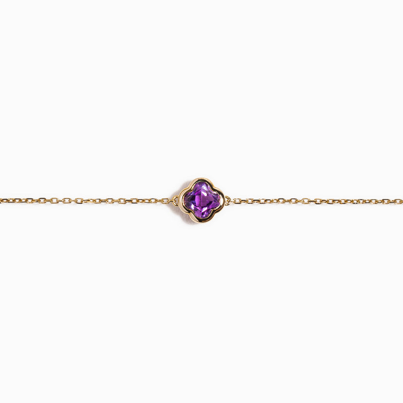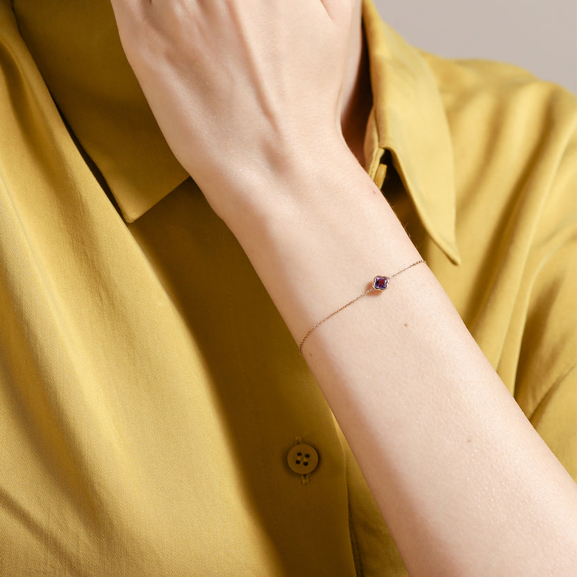 Dainty yet packed with attitude — don’t underestimate this solid gold bracelet’s power to elevate your every outfit. A vibrant amethyst encased in shimmering gold and suspended from a delicate cable chain draws all eyes to your wrist. Wear it with the matching ring and necklace for triple the wow-factor.