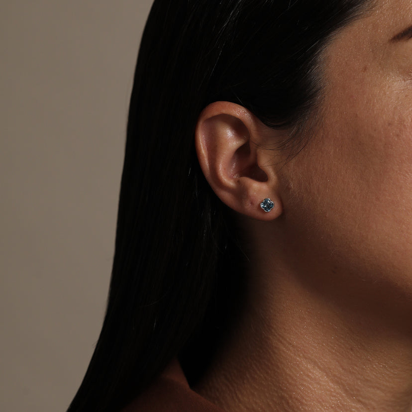 A girl can never own enough gemstones. Double down on your collection with these solid gold clover-shaped stud earrings, featuring vibrant Swiss blue topaz encased in shimmering gold. Dainty and elegant — a must-have for lovers of timeless jewellery. Wear yours with the matching necklace for a luxe look.