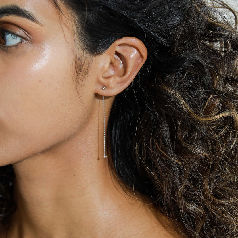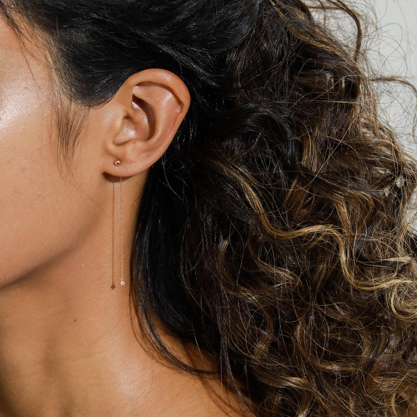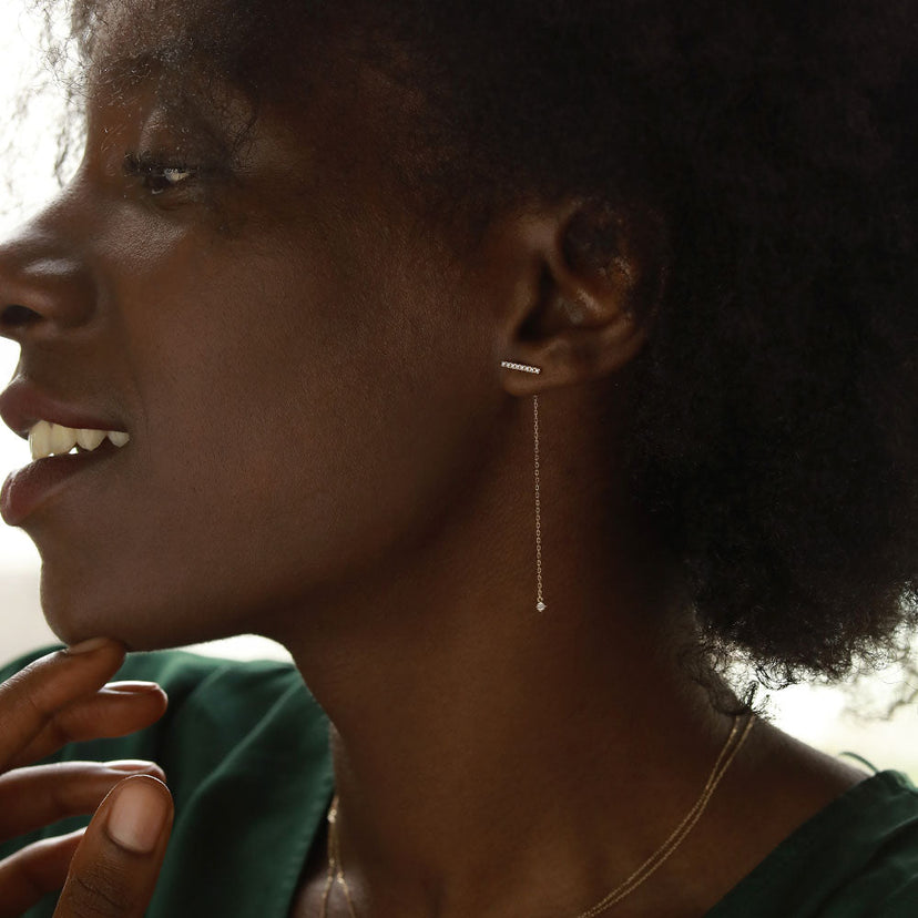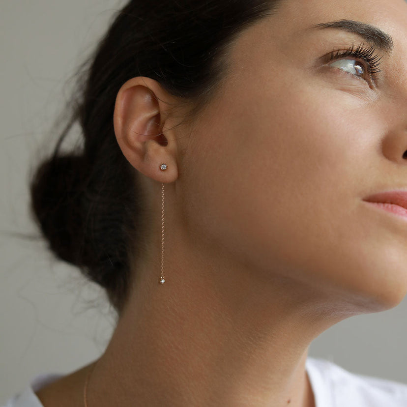 Gorgeous solid gold earring backs that turns any stud into a diamond earring — a dream come true. Let these sway and sparkle with your every move. The Diamond Drop Earring Backs come with a pair of Mini Sphere Studs but are also effortlessly paired with any of your other studs.