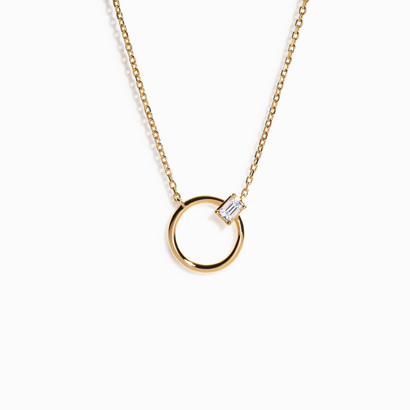 With a golden circle extending into a sparkling gemstone, this vermeil necklace is sure to start many conversations. A symbol of wholeness and eternity, the circle makes a perfect talisman to wear close to your heart. Layer it with its marquise cut sister for an effortless, everyday stack.