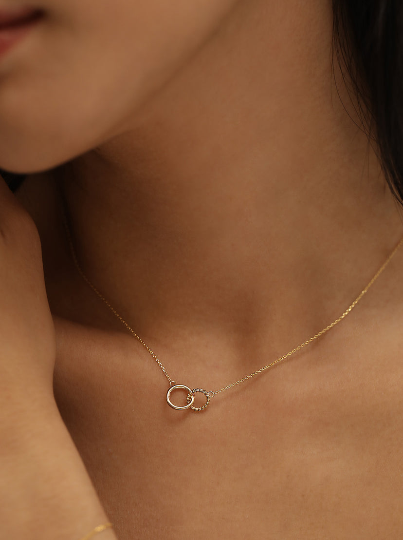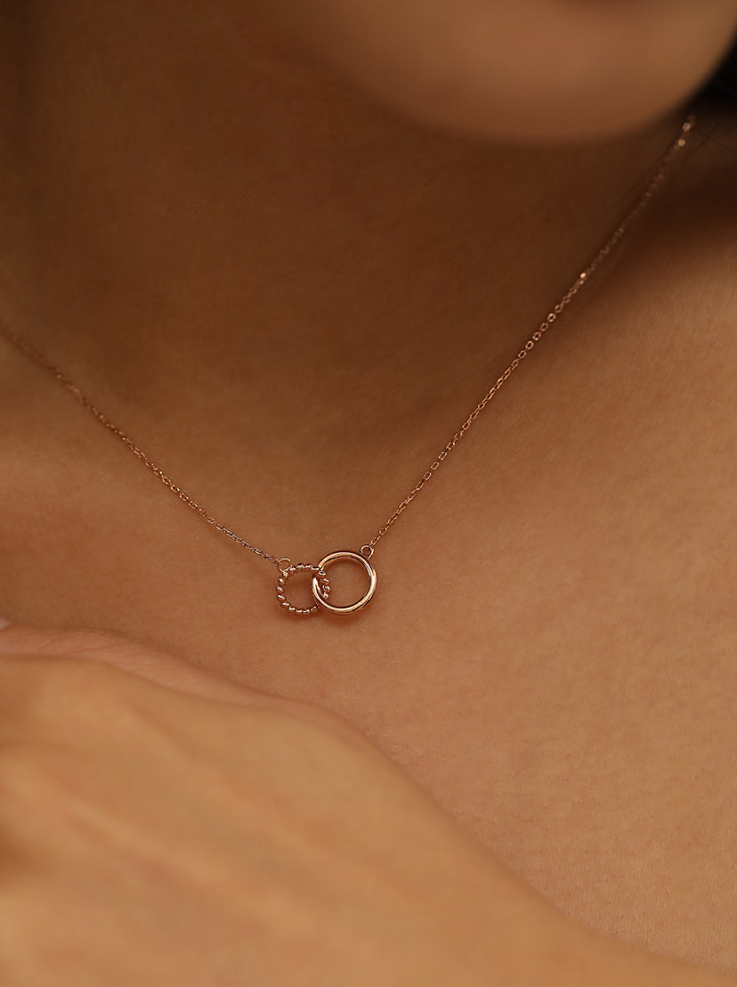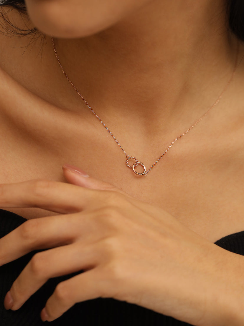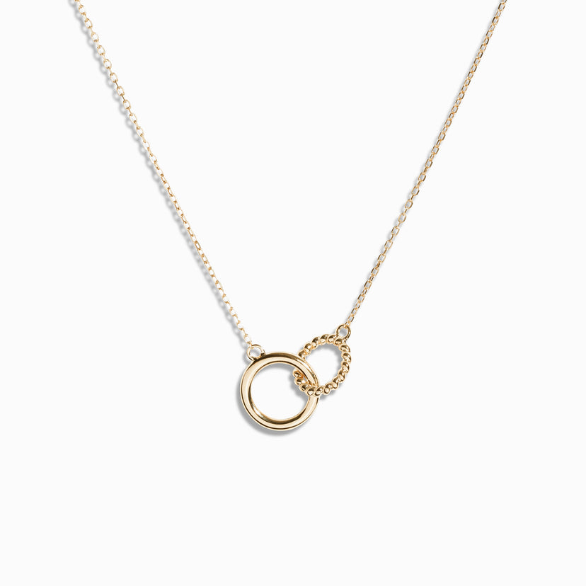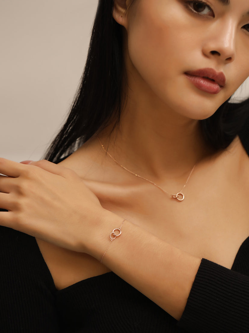 With a twisted ring and a smooth ring linked together in perfect harmony, this solid gold Infinity chain symbolises meaningful connections and eternal love. It’s the ultimate thoughtful gift for that special someone, your best friend, or your other half.