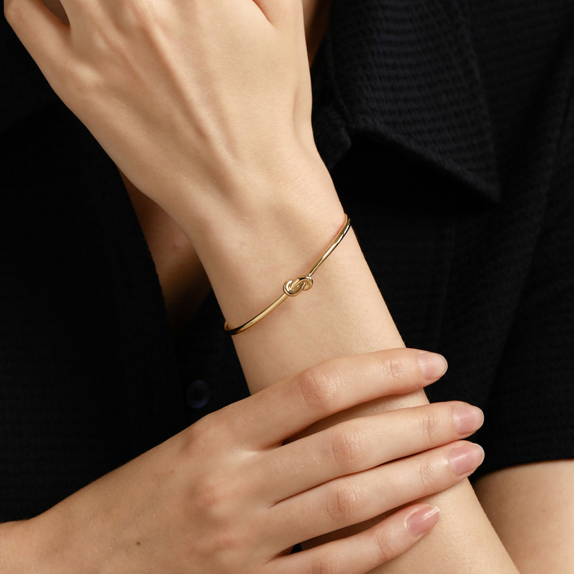 For centuries, sailors wore love knots made out of rope as a tangible reminder of their loved ones waiting for them on the shore. Featuring a simple figure-eight knot resembling an infinity symbol, this glossy vermeil bangle puts an elegant twist on this thoughtful tradition. A reminder of self-love, or the perfect gift for your special someone, best friend, or anyone else you love.