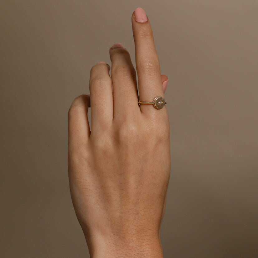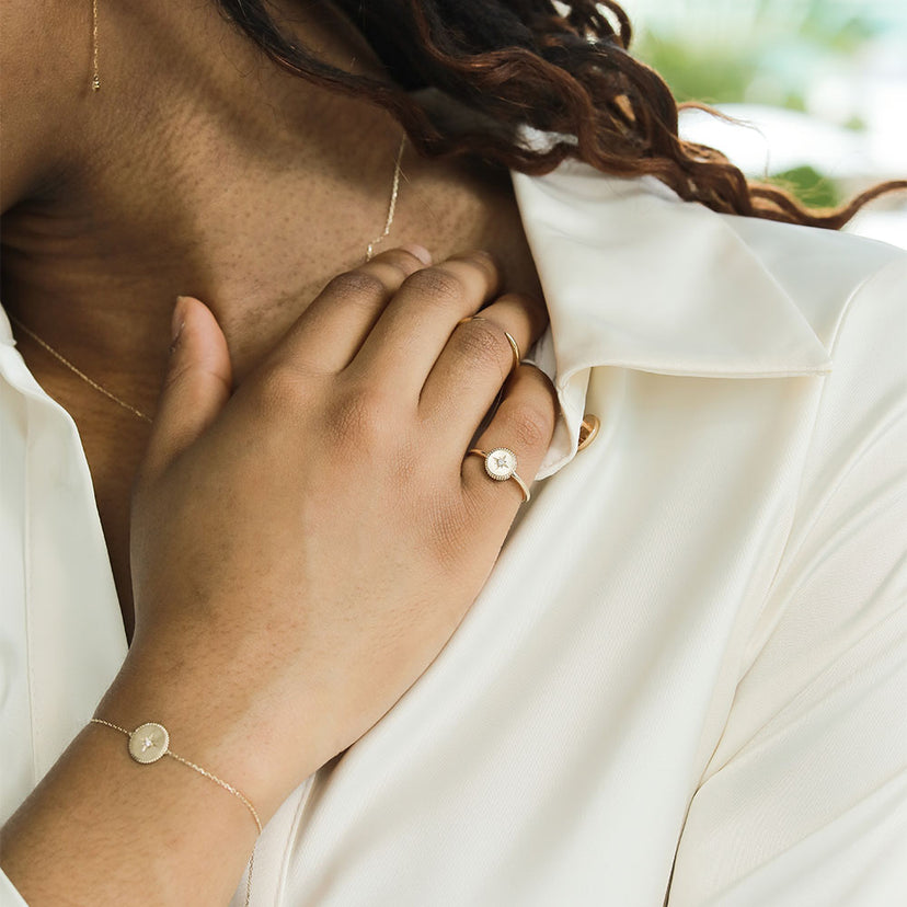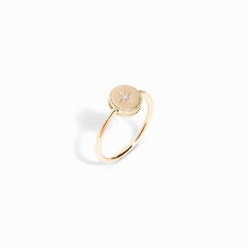 Like the radiant North Star in the midnight sky, this Solid Gold ring symbolises protection, light and clarity. One side features a brilliant-cut diamond embedded in a subtle star; the flip side is perfect for engraving your loved one’s initials for that constant sense of comfort.