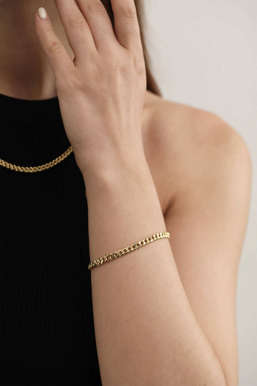 Part of our timelessly stylish Chain Collection, the Omega Chain Bracelet possesses a versatility that knows no bounds. A continuum of glimmering 18k solid yellow gold links, this piece is minimalist yet never subtle. It's all-around, but with an edge. Pair it with its matching necklace to complete the full ensemble.